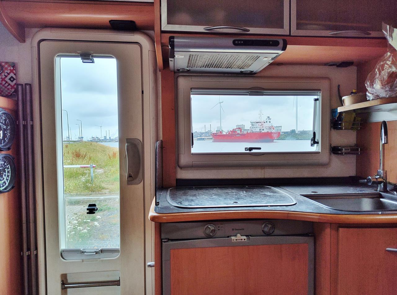 Blick aus dem Womo auf den Nordseekanal