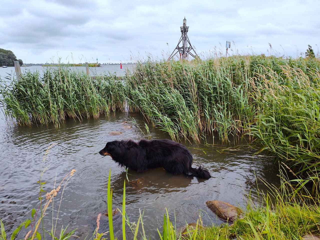 Doxi vor dem Leuchtturm an der Hafenausfahrt
