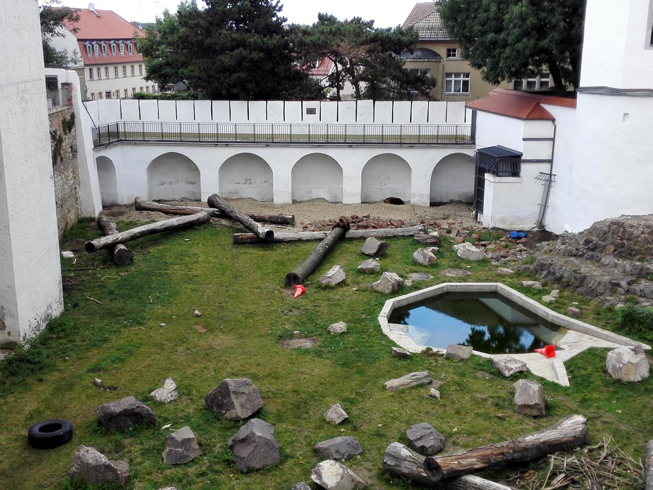 Das Bärengehege links von der Torbrücke