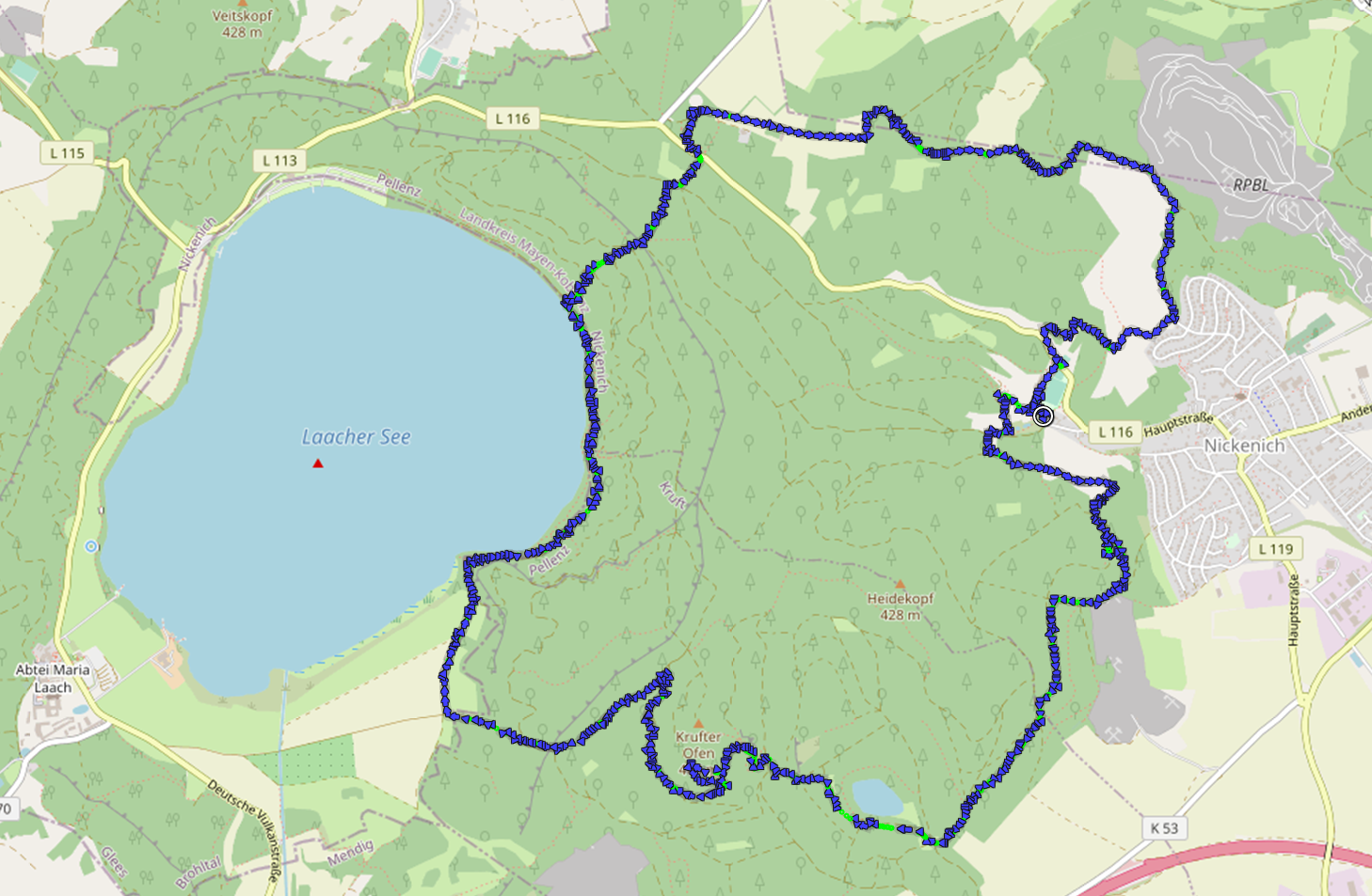 Wanderkarte unserer Tour am Laacher See