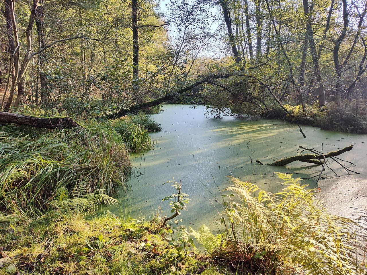 Grün, aber nass: Ein Tümpel bedeckt von Wasserlinsen