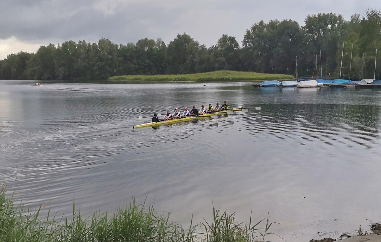 Ein Ruder-Achter mit Steuerfrau beim Wenden