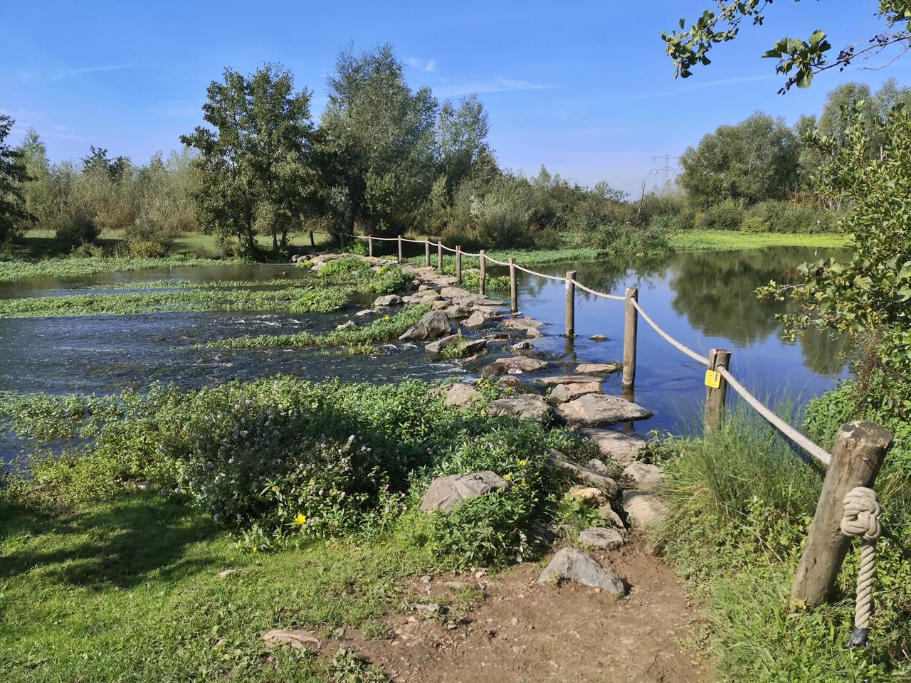 Flussüberquerung am Molenplas auf Natursteinen