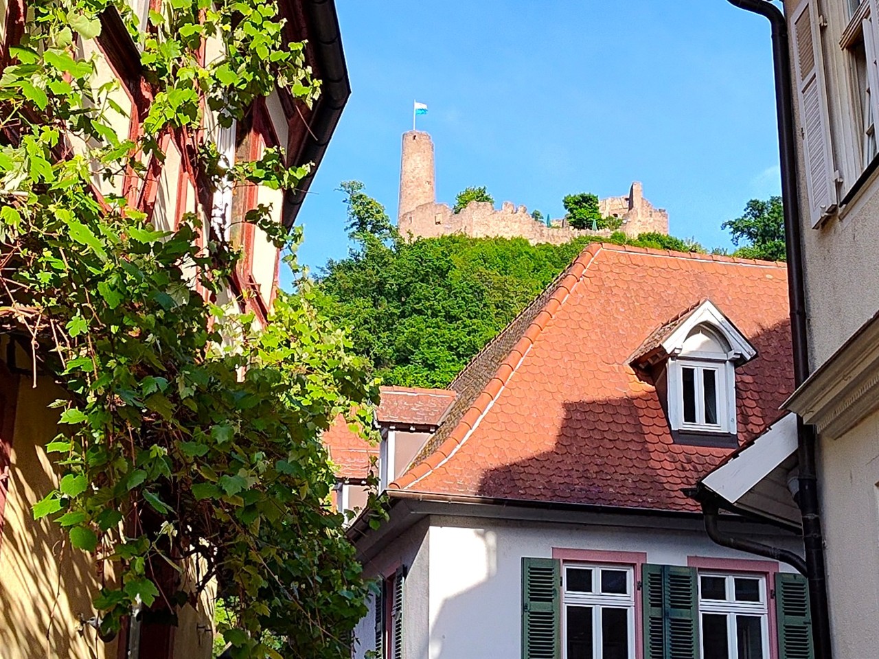 Blick aus der Altstadt hinauf zur Burg Windeck