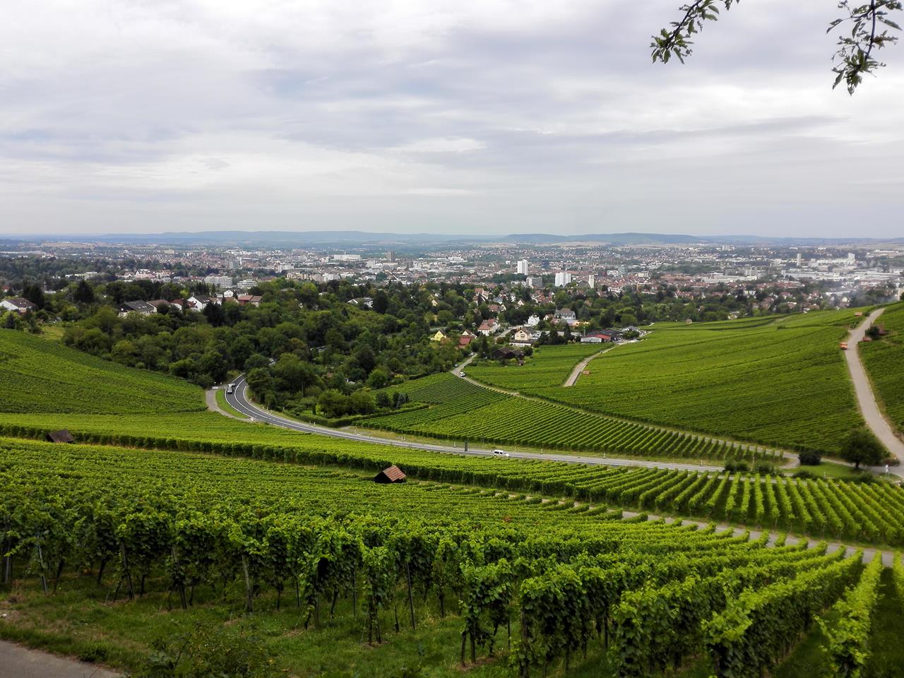 Blick durch die Weinhänge hinunter nach Heilbronn