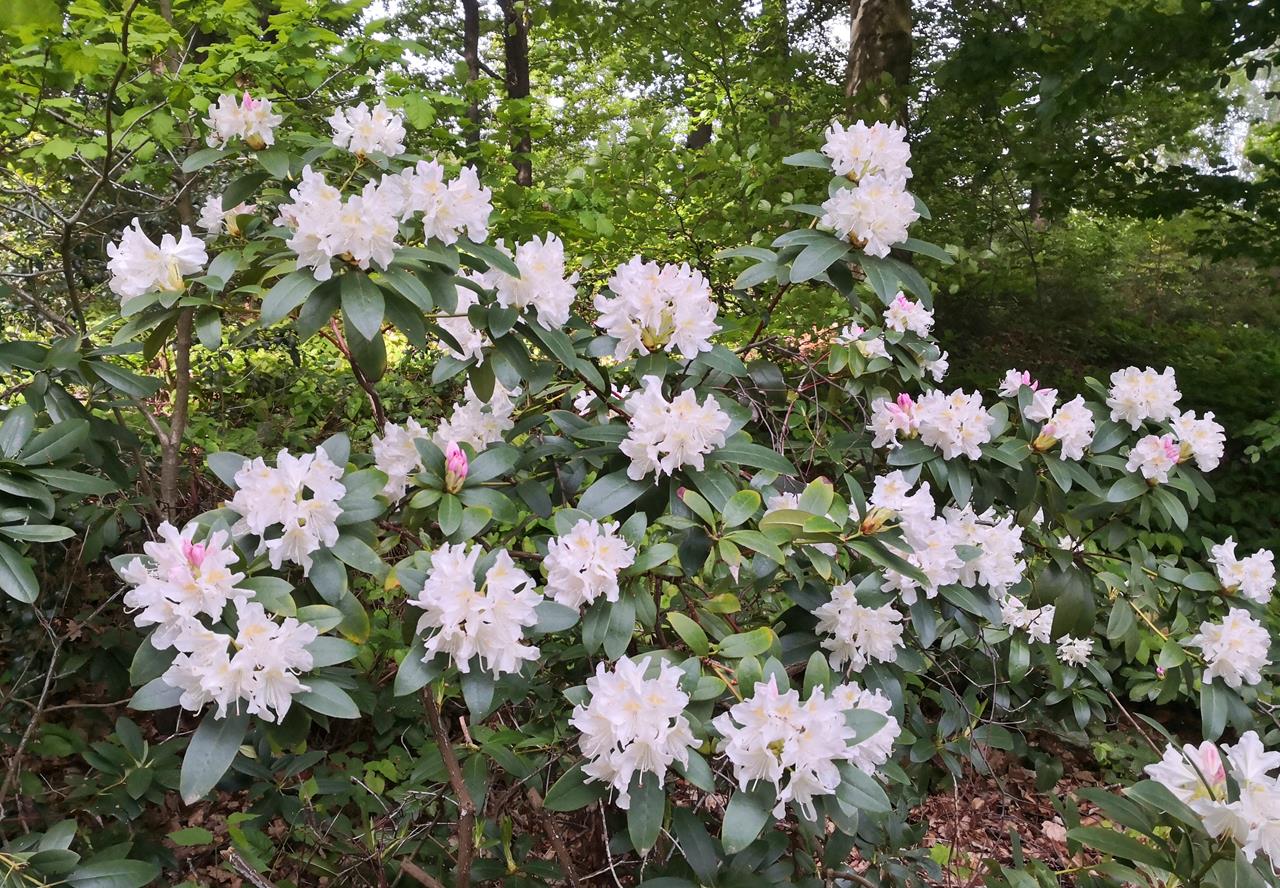 Prächtige Rhdodendren säumen die Wege