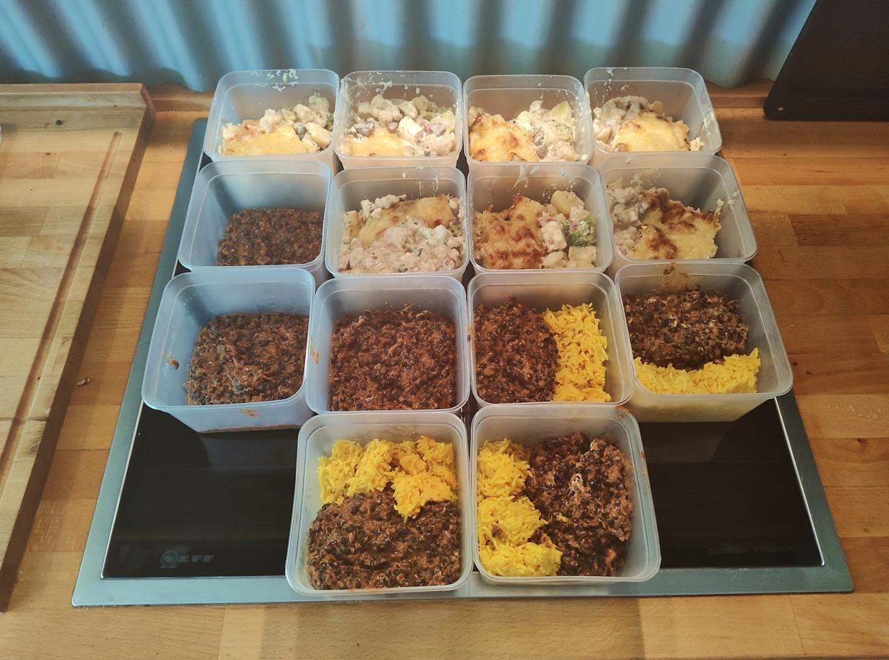 Was vom Essen übrig blieb: Sieben Portionen Dal und noch einmal sieben Portionen Gemüseauflauf