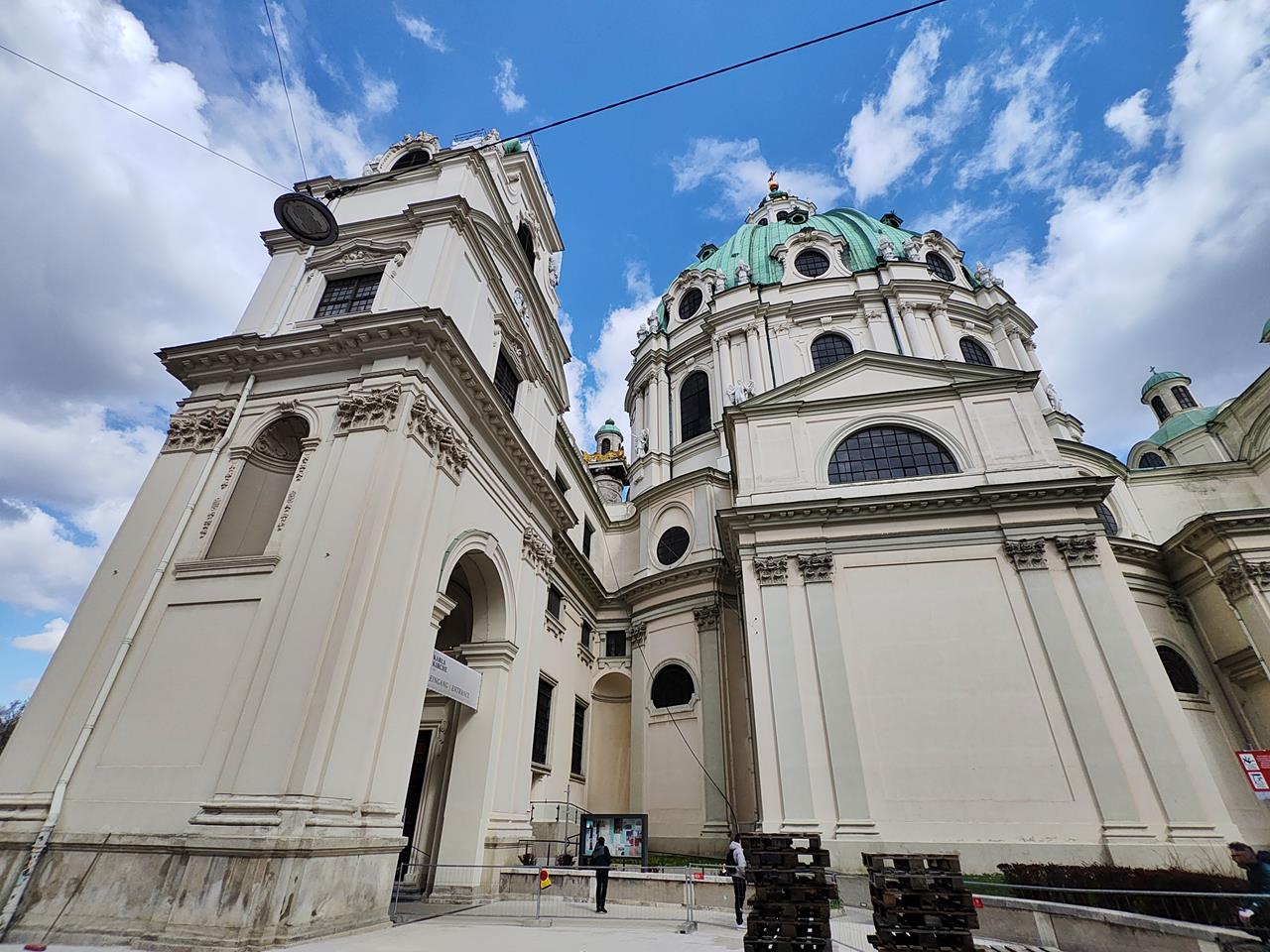 Seitlicher Blick auf die Karlskirche
