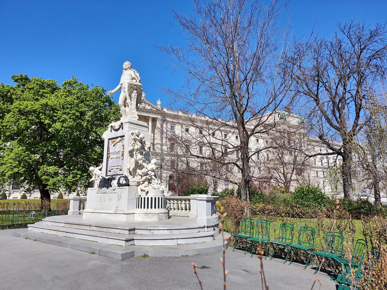 Mozartdenkmal vor der Rückseite der Hofburg