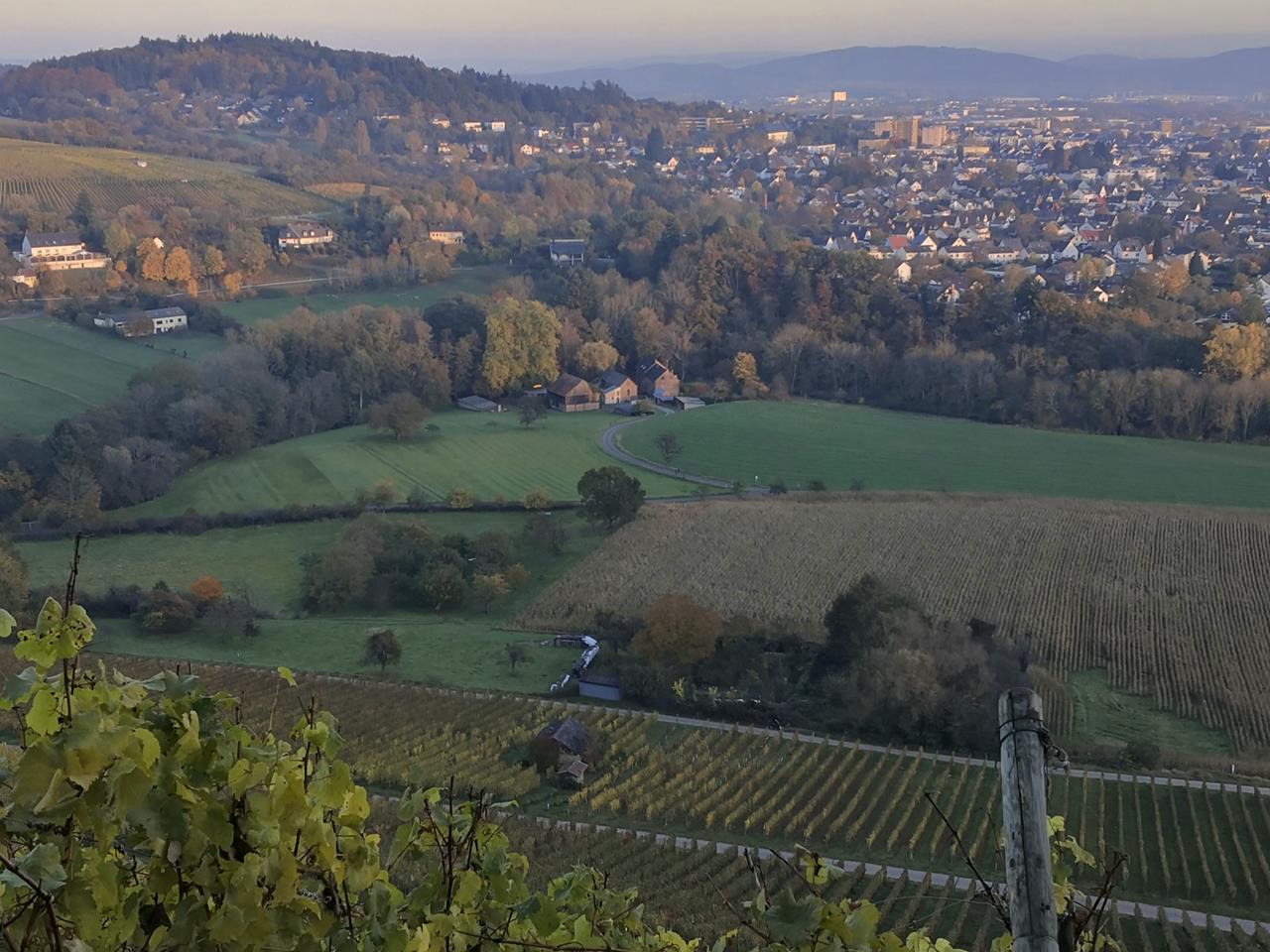 Blick vom Waldrand hinunter zur Bastenmühle