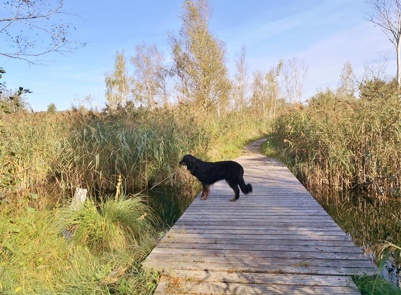 bad_wurzach_sep_2019_023_1280x943 Weiter → Doxi an einem der zahlreichen Wasserläufe, die das Ried durchziehen