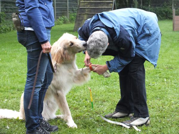 Erst mal Abrollen auf der Wiese vor der Nohner Mühle