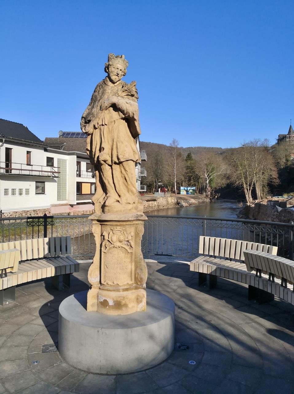 Heiligenfigur am Zusammenfluss von Olef und Urft