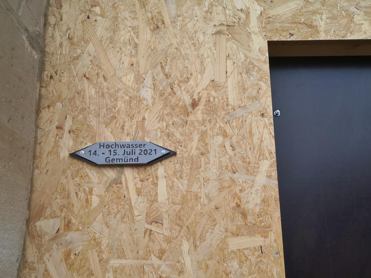 Hochwassermarke an der Kirchenpforte