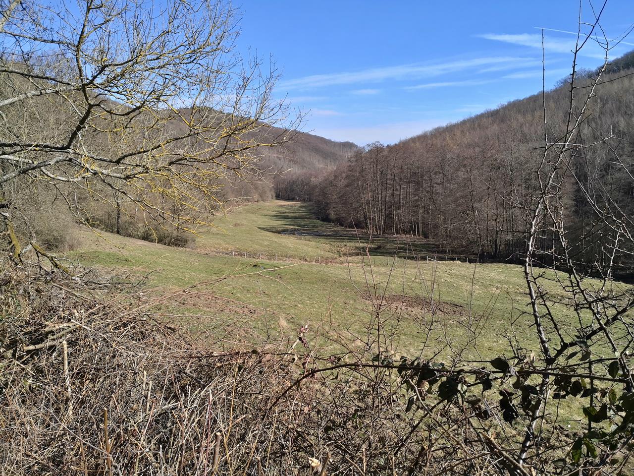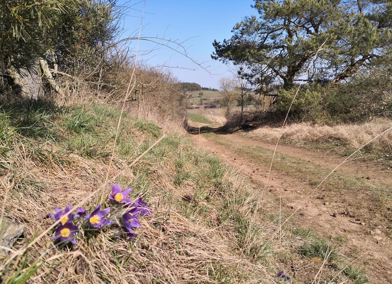 Noch blüht hier außer den Narzissen und den ersten Forsythien nicht viel. Die Bäume sind weiterhin im Winterschlaf, und vor allem bei den großen Buchenbeständen mit ihrem geschwungenen Astwerk sieht das toll aus, weil man quasi durch den Wald hindurchschauen kann.