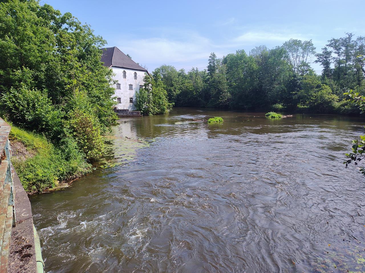 Eigentlich wollte ich von dort noch weiter ostwärts bis zur Erftmündung in den Rhein bei Neuss-Grimlinghausen laufen. Doch als die Mittagssonne ihren Zenit erreicht, wird mir klar, dass so eine 30 km-Tour angesichts der Temperaturen heute etwas zu viel würde.