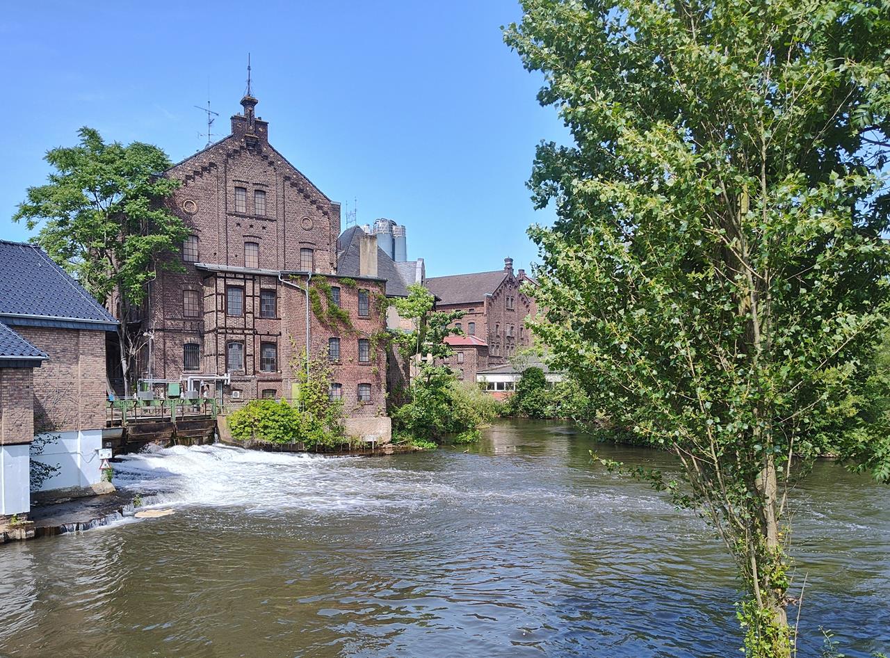 Also drehe ich nach Norden ab und folge der Obererft bis zur Neusser Stadthalle. Dort beginnt der Nordkanal, der mich entlang des Neusser Stadtgartens weiter nach Norden führt.