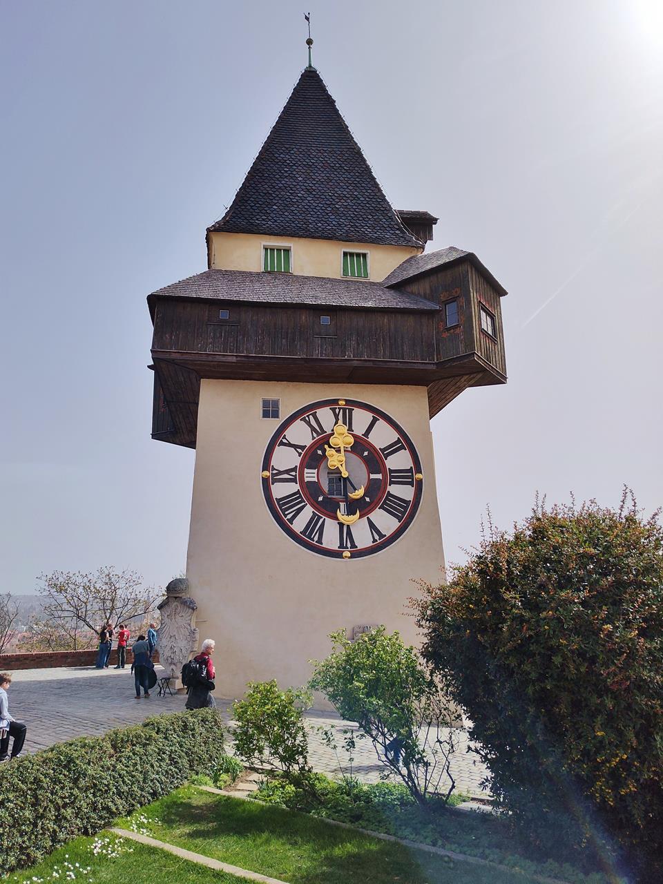 Heute ist der Uhrenturm auf dem Scnhlossberg das viel besuchte Wahrzeichen von Graz. Von dort hat man einen tollen Blick hinunter auf die Stadt und den Fluss, Graz liegt einem dort quasi zu Füßen.