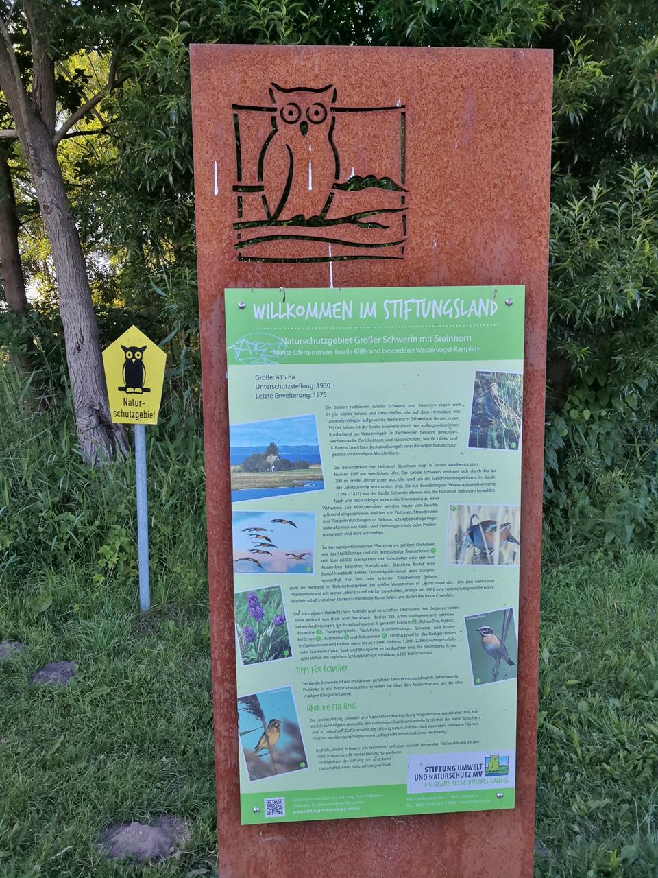 Auf der Halbinsel befindet sich das Naturschutzgebiet „Großer Schwerin mit Steinhorn“, das zweitälteste Naturschutzgebiet im heutigen Bundesland Mecklenburg-Vorpommern.Das Areal darf nur zu ausgewählten Zeiten über einen Uferpfad betreten werden, der zu einer Naturschutzstation führt, dem einzigen Gebäude auf der Halbinsel.