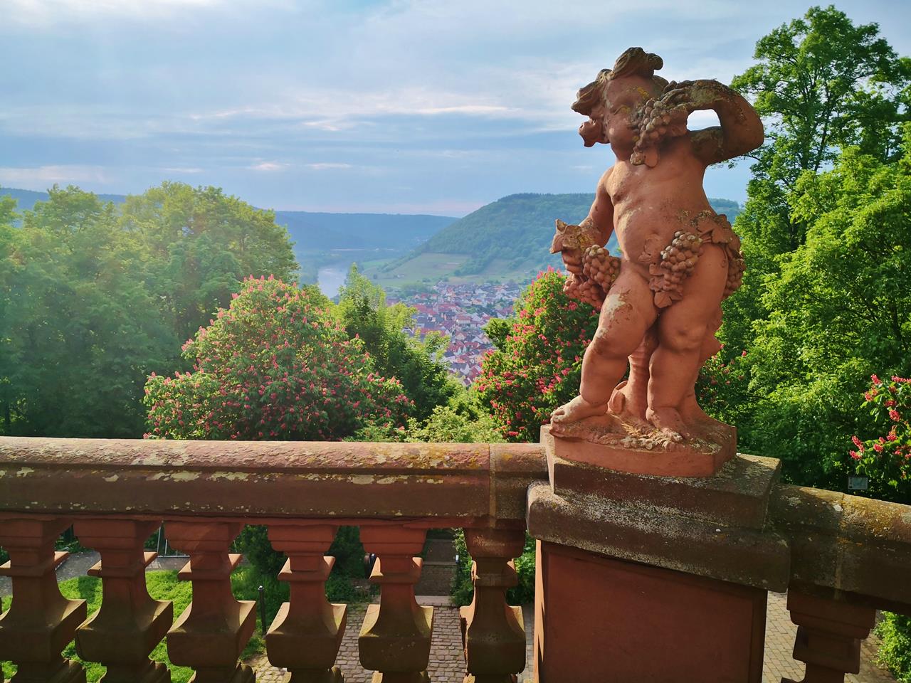 Rund fünf Kilometer von Miltenburg entfernt thront auf einem Bergsporn hoch über dem Main das Franziskanerkloster Engelberg. Es ist das Ziel meiner heutigen Abendwanderung mit Doxi.