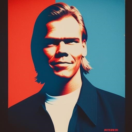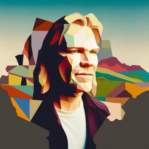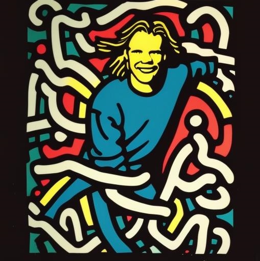 Hier habe ich ein Foto von mir genommen, das in meinen frühen Zwanzigern im Auftrag eines Buchverlags entstanden ist. Dazu habe ich Anweisungen gegeben, wie etwa „male mich im Stil von Keith Haring“ oder Caspar David Friedrich, oder Banksy, oder Art Deco und und und.