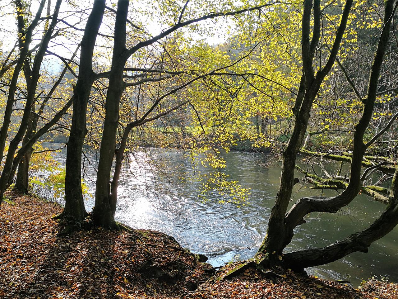 Heute sind wir sehr schön an der Wupper im Grenzgebiet zwischen Solingen und Leichlingen gewandert. Die Tour begann am Wanderparkplatz in Solingen-Glüder und führte uns zunächst in westlicher Richtung entlang des linken Wupper-Ufers durch Mischwald.