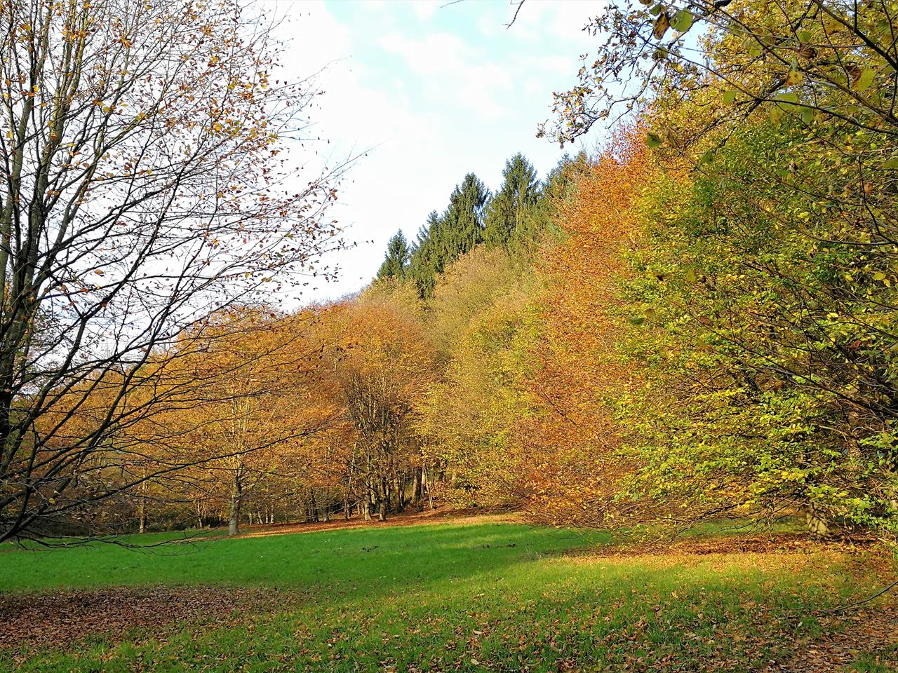 Bald verließen wir den Uferpfad und stiegen hinauf auf die Wupperhöhen bis zum Pferdeland Leide. Dort begann unser Abstieg zurück zur Wupper und hinunter zum „Alten Zollhaus“ bei Wupperhof.