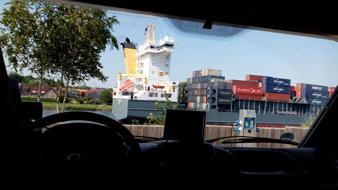Vor dem Womo-Fenster ziehen Tag und Nacht die ganz großen Pötte auf ihrem Weg zwischen Nord- und Ostsee vorbei.Auf der anderen Kanalseite liegt Rendsburg mit der berühmten Rendsburger Eisenbahnhochbrücke. Mit ihrer untergehängten Seilfähre verbindet sie die beiden Seiten des Kanals.