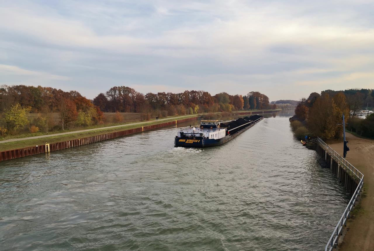 Am Morgen ist es noch ein wenig diesig an der Kanalbrücke zwischen Ahsen und der Haard