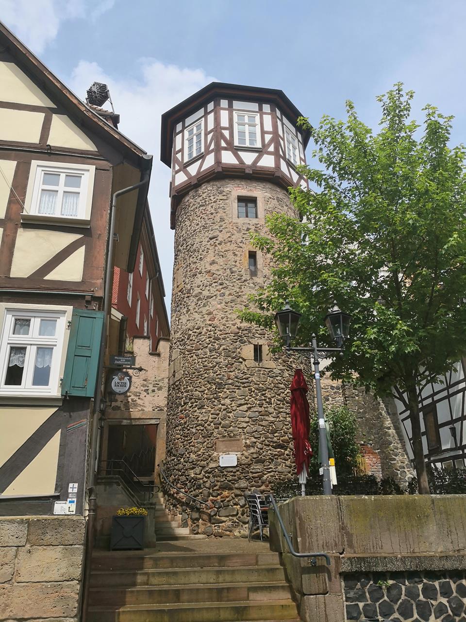 Lauterbach wurde von den Kriegen der Neuzeit verschont und verfügt deshalb über eine sehenswerte Altstadt und viele gut erhaltene Baudenkmäler. Davon konnte ich mir auf meinem knapp zweistündigen Stadtspaziergang mit Doxi einen lebhaften Eindruck verschaffen. Es ist wirklich hübsch hier und vor allem gibt es in der Bäckerei am Markt wunderbaren Zwiebelkuchen 🙂