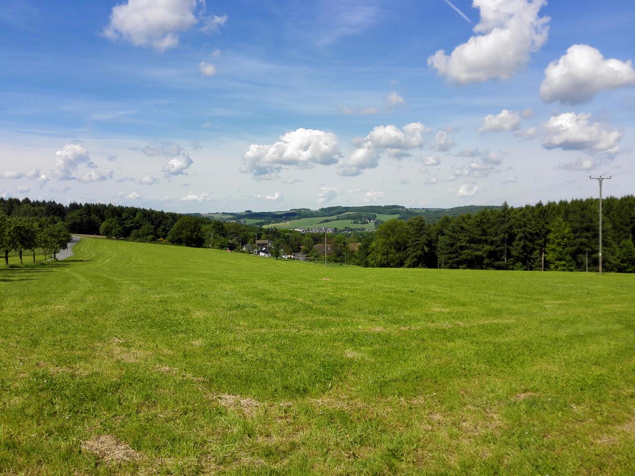 Gleich am Anfang der Tour boten sich uns herrliche Fernblicke in das Bergische Land, bevor es zum ersten Mal hinunter in das Tal der Agger ging.Wir unterquerten die Autobahn A4 und stiegen auf der anderen Talseite der Sonne entgegen wieder hinauf auf die Höhen.