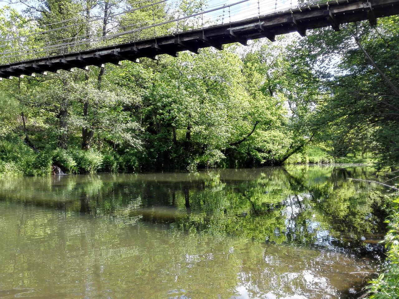 Bald schon ging es erneut hinab ins Tal und wieder unter der Autobahn A4 hindurch. An einem idyllischen Ensemble künstlich angelegter Fischteiche legten wir im Schatten eine Rast ein.