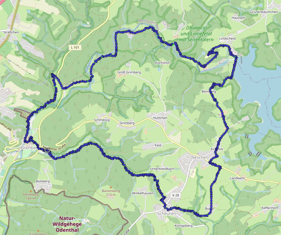 In der Nähe von Altenburg wird der Fluss in der Großen Dhünntalsperre aufgestaut, der drittgrößten Trinkwassertalsperre in Deutschland.