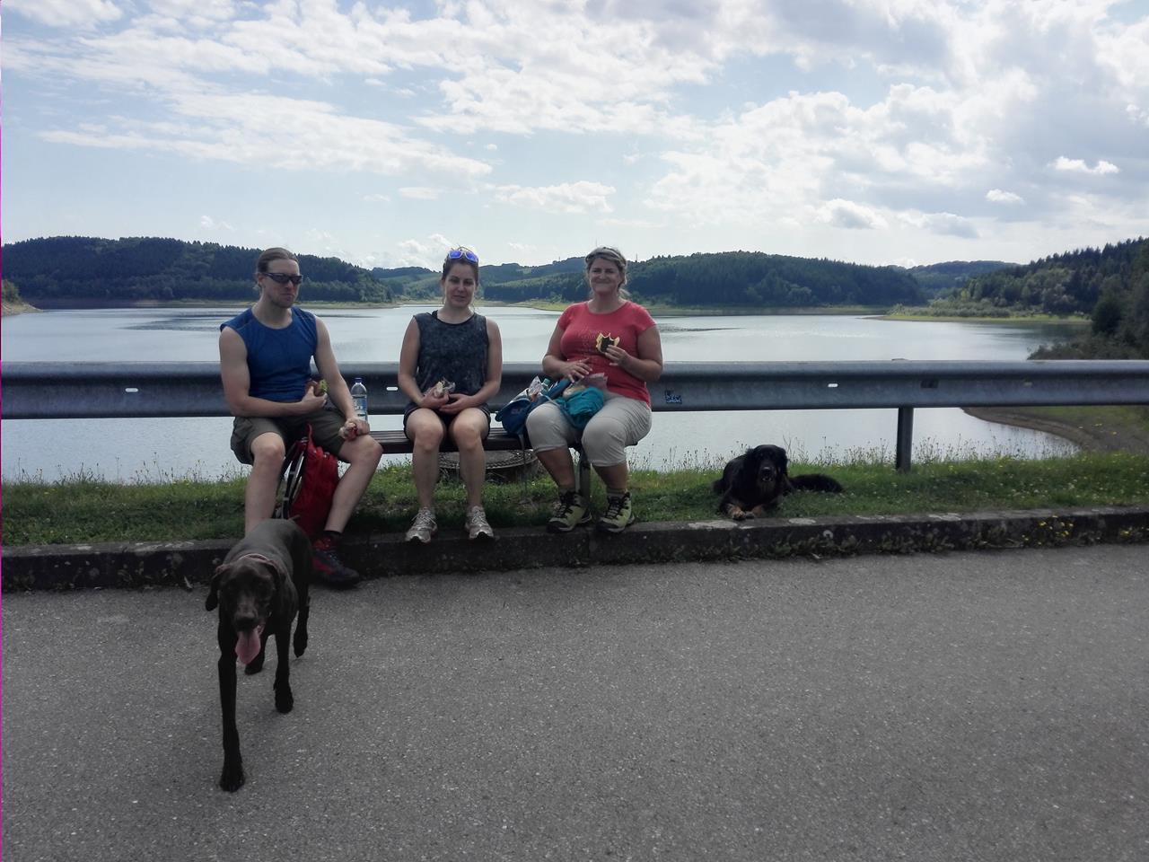 Dort machen wir auf der Hälfte der Tour eine schöne Rast und genießen unsere mitgebrachten Brote. Und die beiden Hunde bekommen natürlich auch etwas ab.