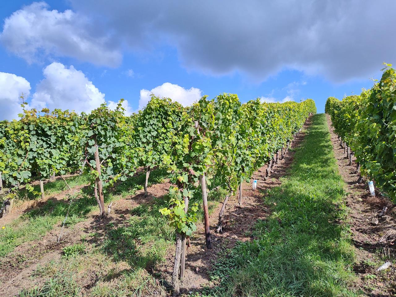 Mehring ist geprägt vom Weinbau und mit 237 Hektar bestockter Rebfläche die fünftgrößte Weinbaugemeinde an der Mosel. Wie viele Orte der Umgebung ist auch Mehring römischen Ursprungs und mindestens seit dieser Zeit besiedelt.Gleich nach unserer Ankunft starte ich mit Doxi zu einer 12 km langen Wanderung durch die Weinberge von Mehring und den dahinter liegenden Wald auf den Moselhöhen.