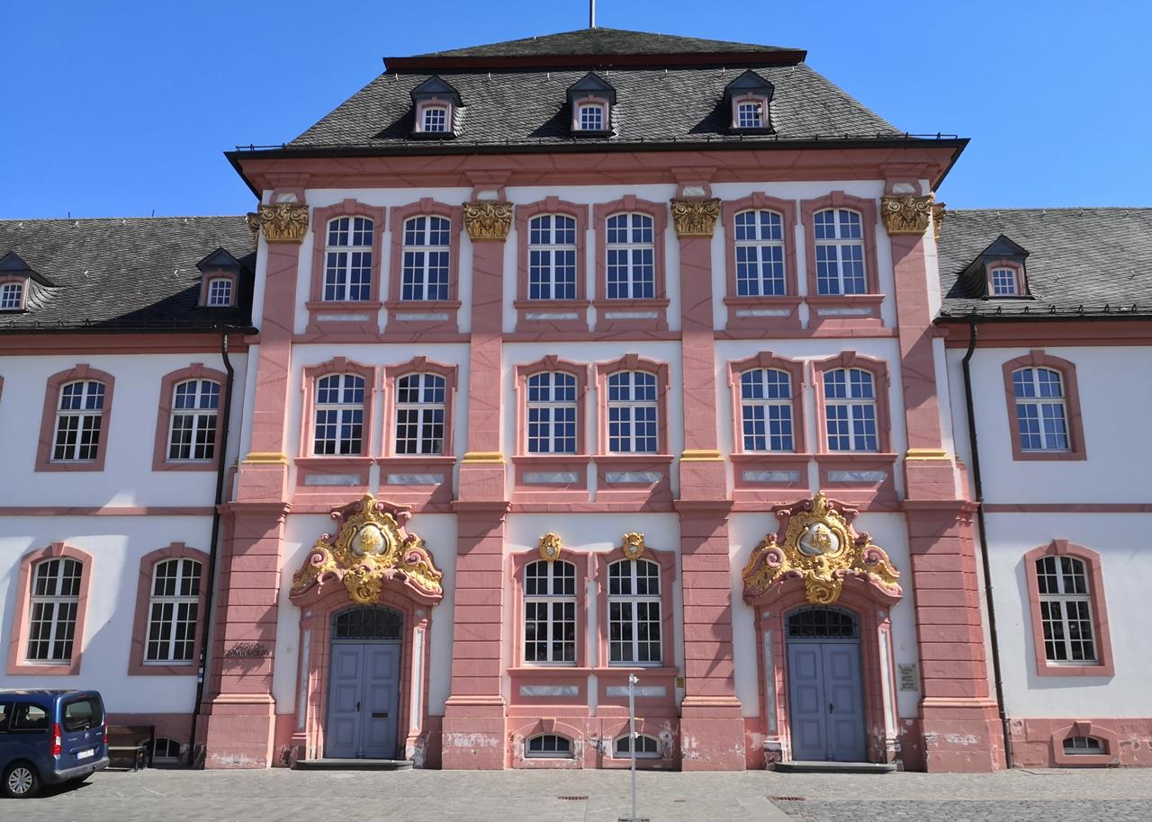 Die heutige Kirche wurde ab dem Jahr 1721 errichtet. Im Jahr 1748 begann man mit dem Bau der barocken Nebengebäude. Sie beherbergen heute das Regino-Gymnasium, benannt nach einem berühmten Abt des Klosters.Das Kloster existierte an dieser Stelle bereits seit dem achten Jahrhundert n. Chr. Es wurde 1222 Mittelpunkt eines selbständigen Fürstentums, das 1576 vom Kurfürsten von Trier annektiert wurde. .