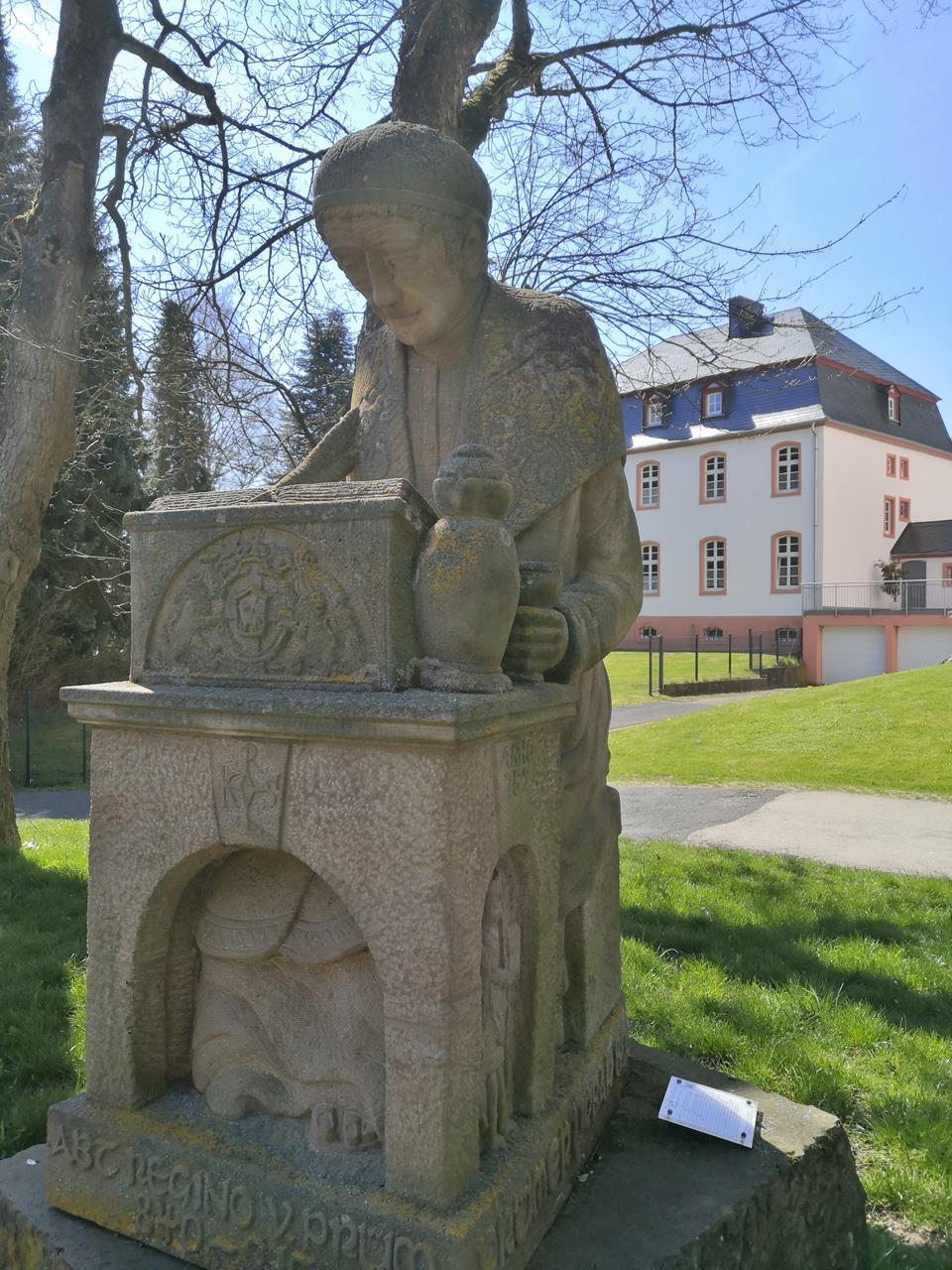 Beim Rückweg zu meinem Startpunkt am Rande von Niederprüm stoße ich auf ein weiteres ehemaliges Kloster: König Pippin schenkte 762 dem Kloster Prüm das Hofgut Niederprüm. Dort entstand ab 1190 das Kloster der Benediktinerinnen. Das Klostergebäude wurde 1670 neu gebaut und beherbergt heute ein Progymnasium der Vinzentiner.