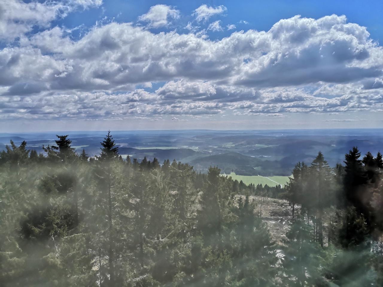 Leider sind durch die Verglasung auch keine so schönen Fotos möglich, aber die Fernblicke vom Turm in das Frankenland am Fuße des Thüringer Walds sind einfach gigantisch.