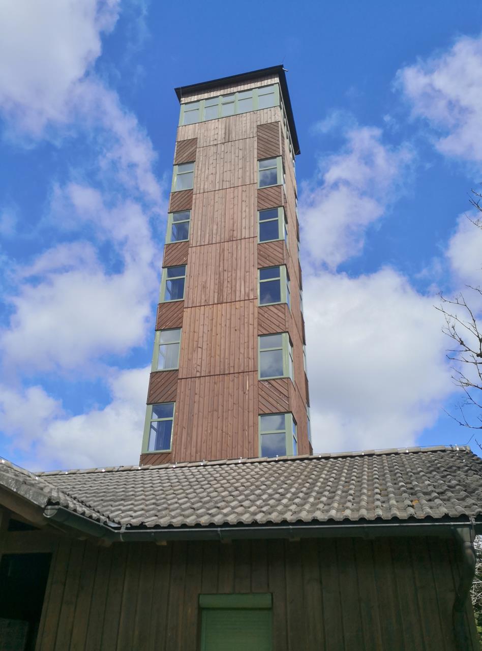 Vom Parkplatz an der Bundesstraße laufen wir 5 km zum großen Aussichtsturm auf dem Bleßberg und wieder zurück.