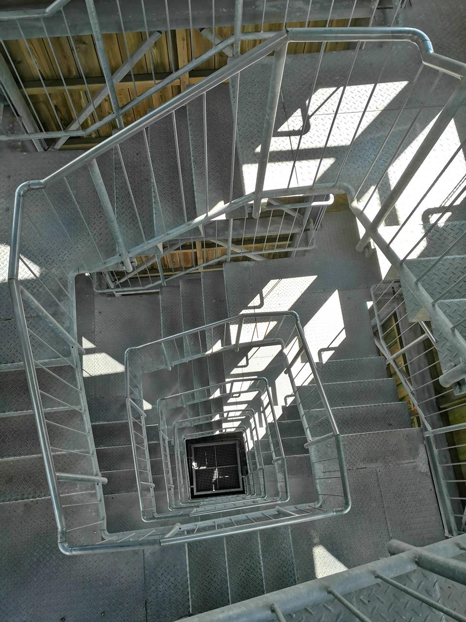 Unterwegs stürmt es bereits ordentlich, doch oben am Aussichtsturm ist es richtig krass. Kein Wunder, dass der hölzerne Turm verglast ist und keinen freien Blick nach draußen gewährt. Auch so pfeift und dröhnt es im Turm gewaltig.