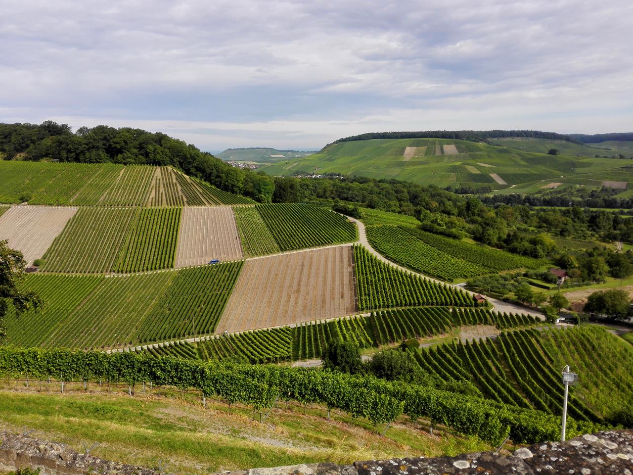 Blick durch die Weinhänge hinunter nach Heilbronn