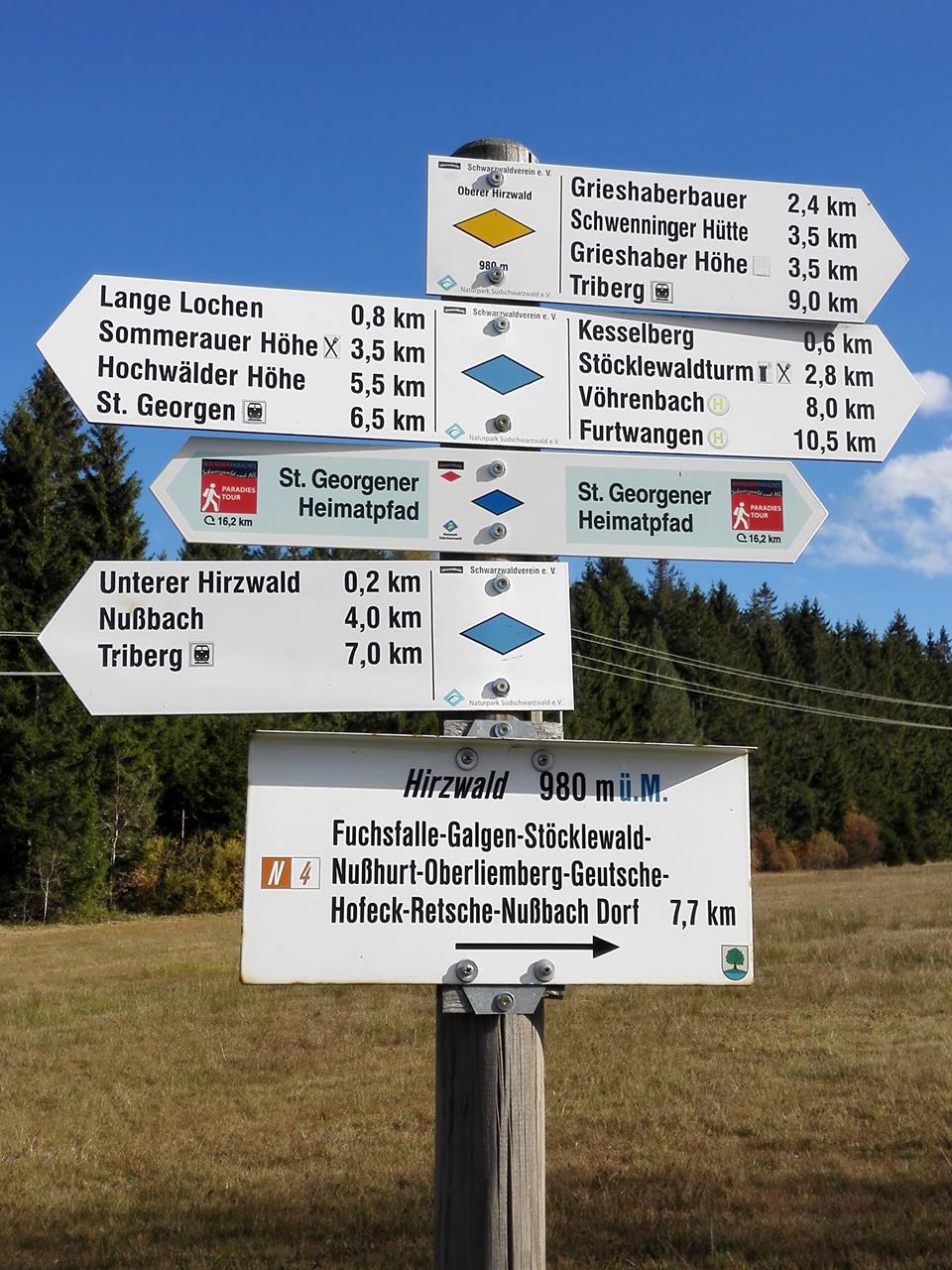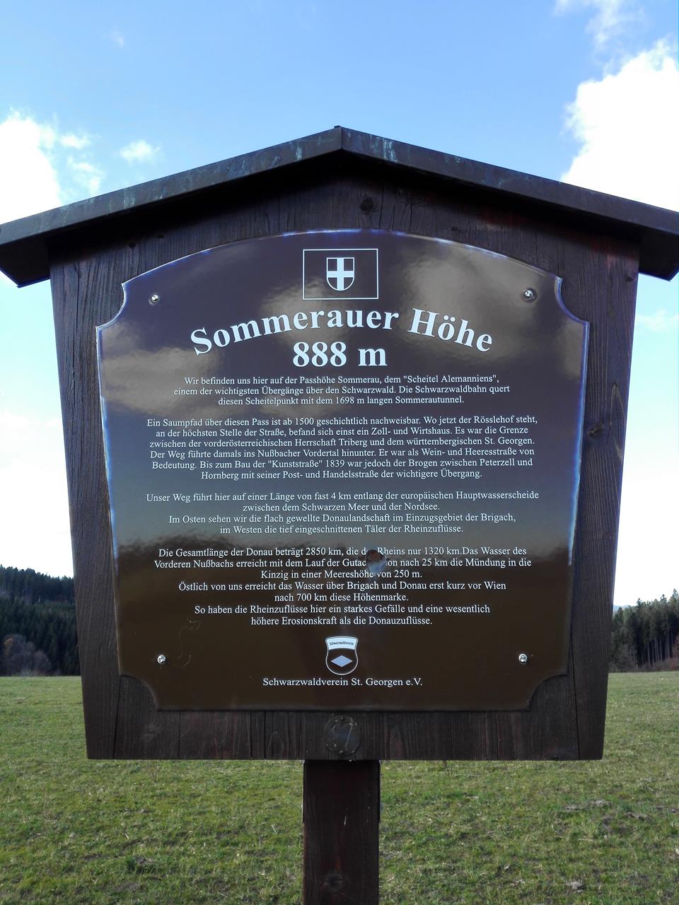 So erfahren wir z. B., dass wir auf einer Passhöhe die nordeuropäische Wasserscheide zwischen Nordsee und Schwarzem Meer passieren und unweit unseres Weges die Brigach, einer der Quellflüsse der Donau, entspringt.