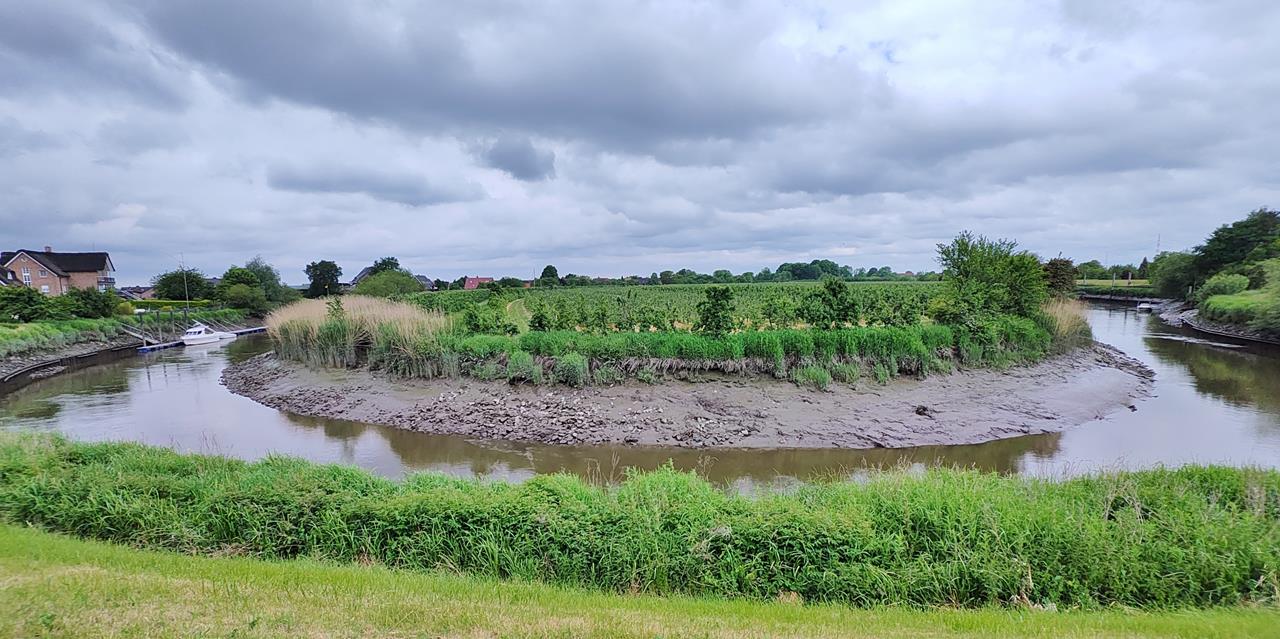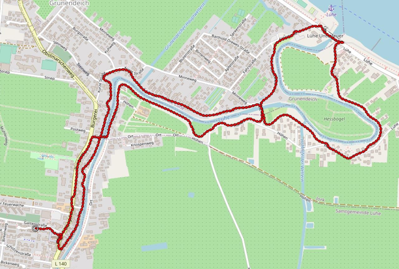 Mit Doxi laufe ich von Steinkirchen auf dem Lühe-Damm über die Ortschaft Grünendeich zur Elbe und wieder zurück.