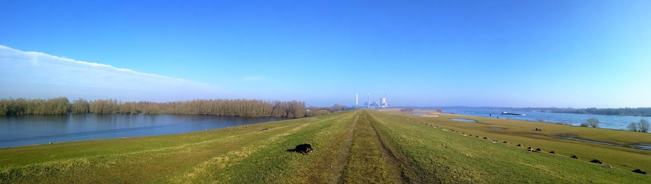Heute eine kleine Wanderung auf dem Rheindeich beim Rheinberger Ortsteil Budberg, rund 15 Kilometer nördlich von Duisburg. Gegenüber, auf der Ostseite des Flusses, liegen die Rheinauen zwischen Walsum und Dinslaken.