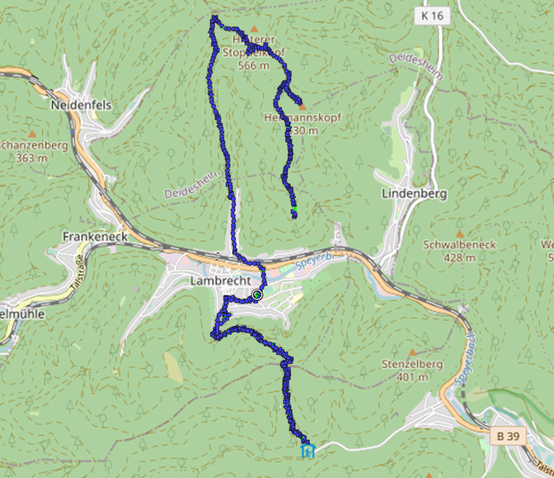 Wir sind nach Lambrecht weitergefahren und damit noch etwas tiefer in den Pfälzer Wald vorgestoßen. Die Unterschiede zwischen Tal- und Höhenlagen sind dort noch ausgeprägter,also zuvor in Hochspeyer.