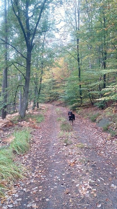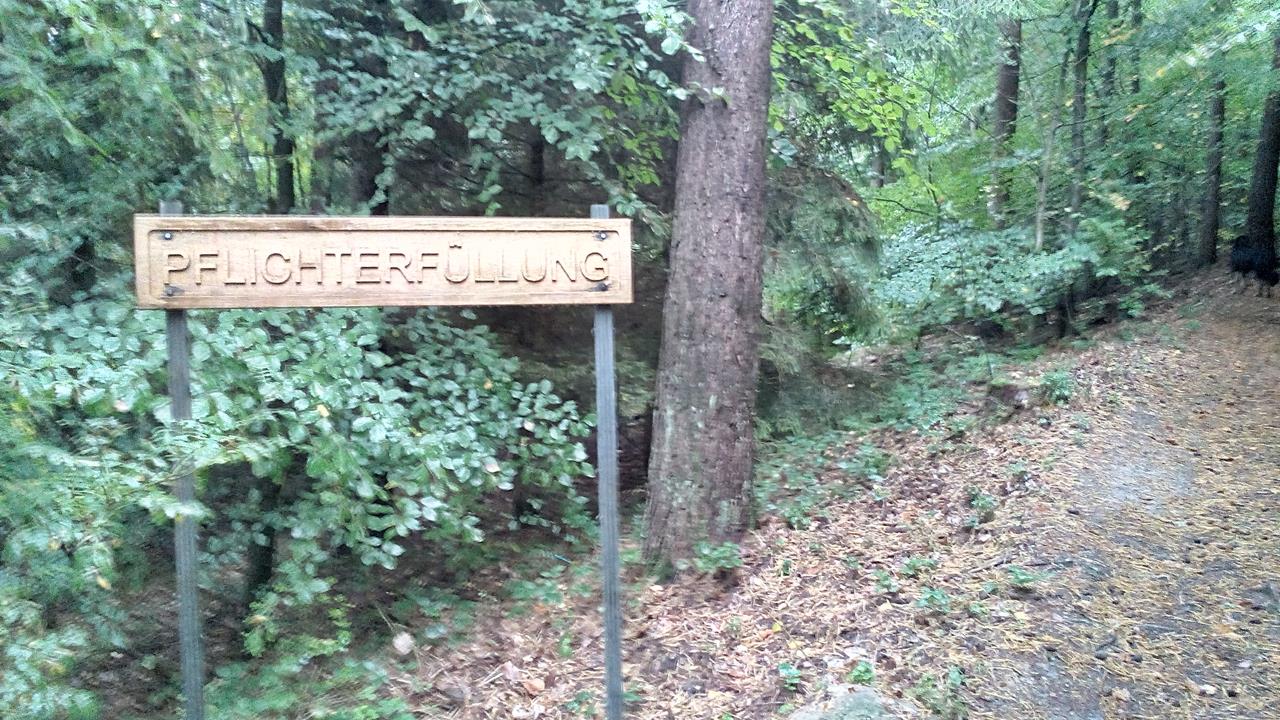 Anschließend ging es noch etwas weiter bergaufwärts, bis auf die Spitze des Hermannkopfes in 530 Metern Höhe. Dort sind mir die ersten Bäume im bunten Kleid des Herbstes begegnet, aber viele waren es noch nicht. Zurück führte uns dann der schöne Lambertusweg zurück ins Tal.