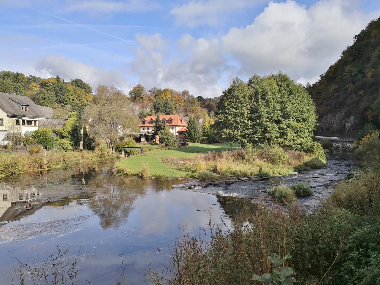 So viele schöne Ausblicke, sowohl von Felsklippen weit oberhalb der Nahe, als auch auf Flussniveau, so herrlich bunte Mischwälder an den Steilhängen und lauschige Talgründe am Fluss in einer weitgehend unberührten Landschaft. Das hat wirklich Spaß gemacht.