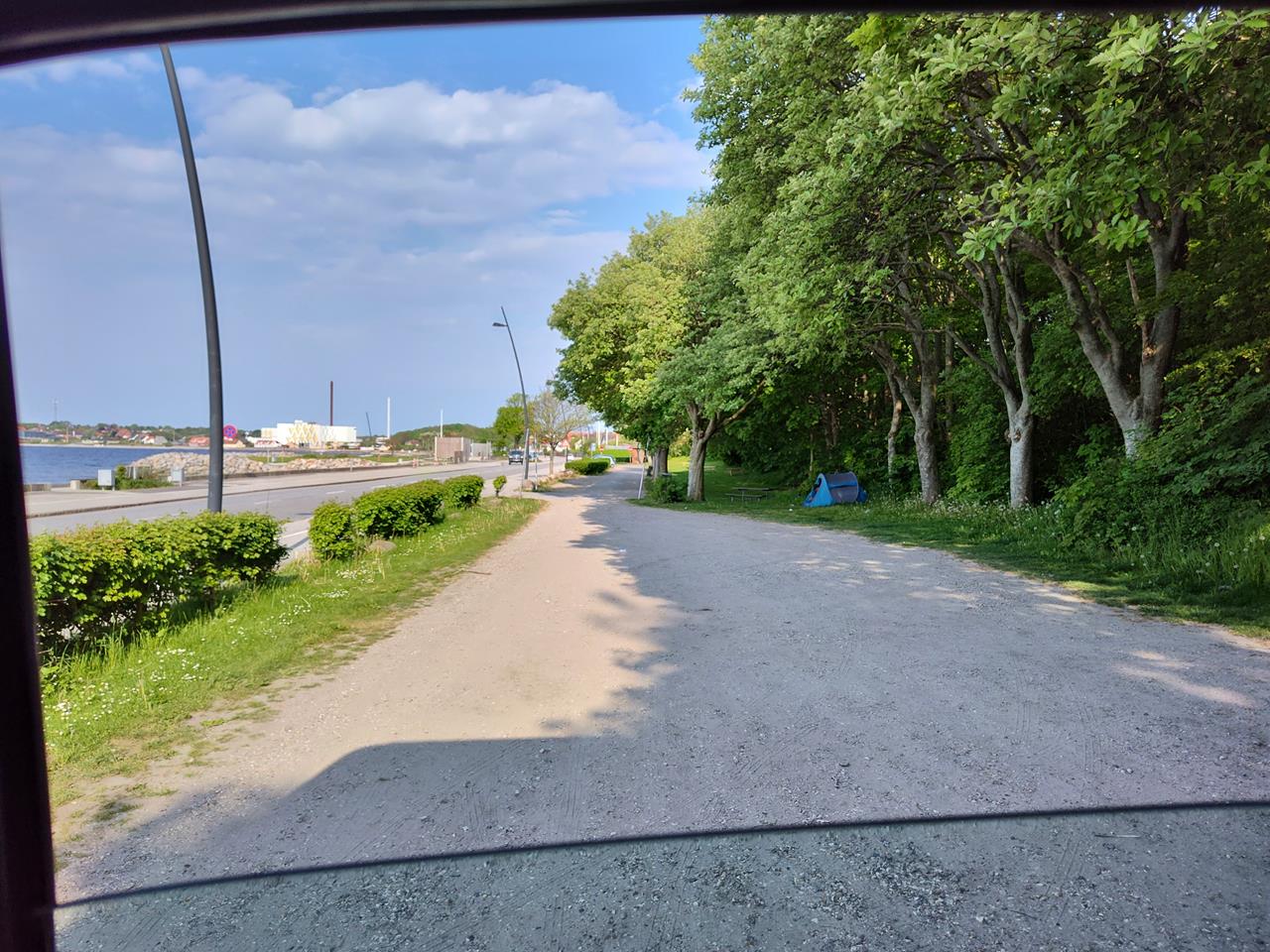 Zehn Gehminuten außerhalb der Stadt gibt es an einem Picknick-Parkplatz auch einige kostenlose Stellplätze für Wohnmobile. Man steht zwar an einer viel befahrenen Straße, aber dafür geht der Blick direkt auf das Wasser des Limfjords.