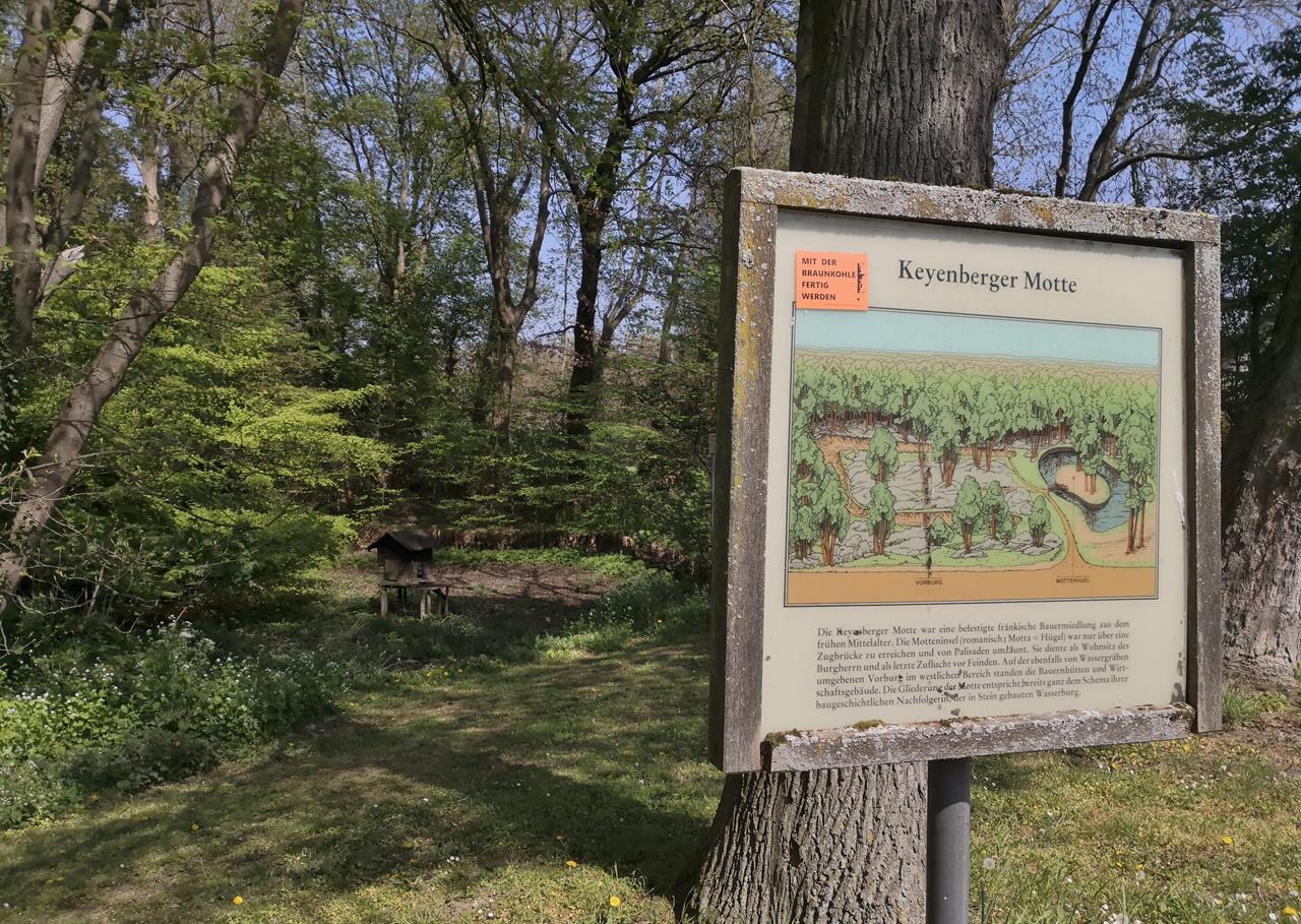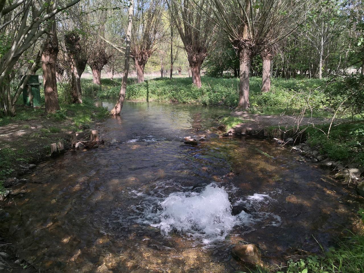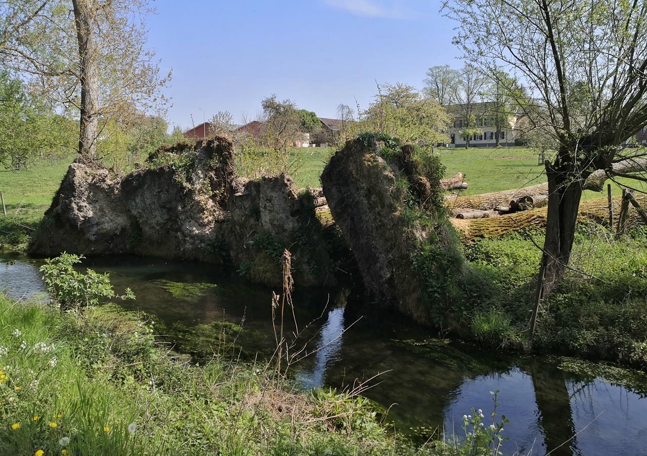 Es ist sehr sonnig heute und so freuen wir uns über jeden Schatten, den wir am Ufer des Flusses erreichen können. An die ursprüngliche Niersquelle in einer sumpfigen Wiese am Ziel unserer Wanderung zwischen Kuckum und Unterwestrich erinnert allerdings nur noch eine Infotafel. Die Niers ist hier lediglich ein kleiner Bach, der durch Sümpfungswasser gespeist wird, doch in jedem Fall nimmt sie hier ihren Anfang.