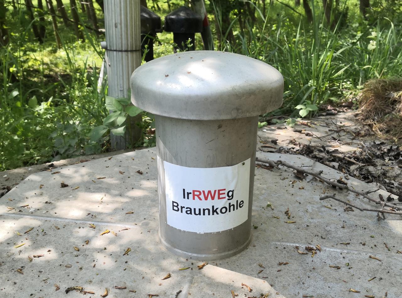 Wir laufen von Wickrath über Wickrathberg, Wanlo und Keyenberg nach Kuckum. Südlich von Wanlo begegnen uns überall große Pumpen und auch immer wieder Aufkleber von Braunkohlegegner, die sich gegen den Betreiber RWE richten.